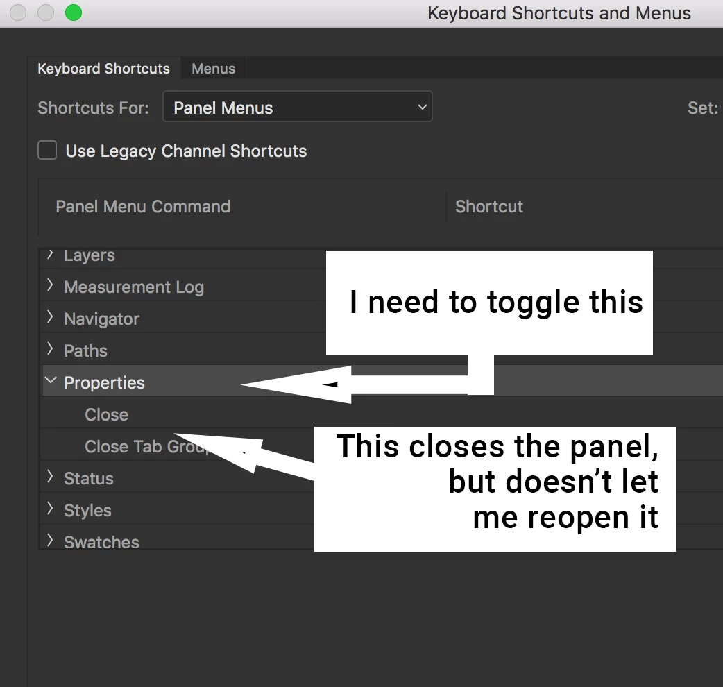 Is there a way to toggle the adjustment panel open a closed with a keystroke, or is there a script that can do that?