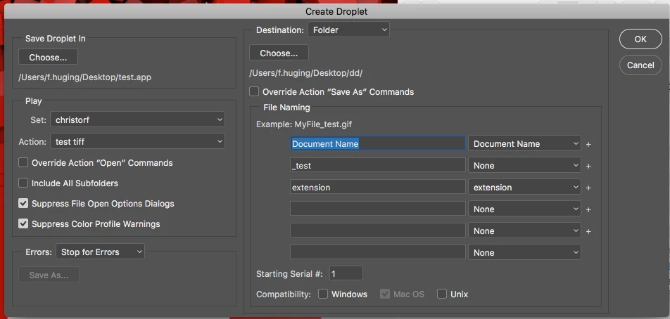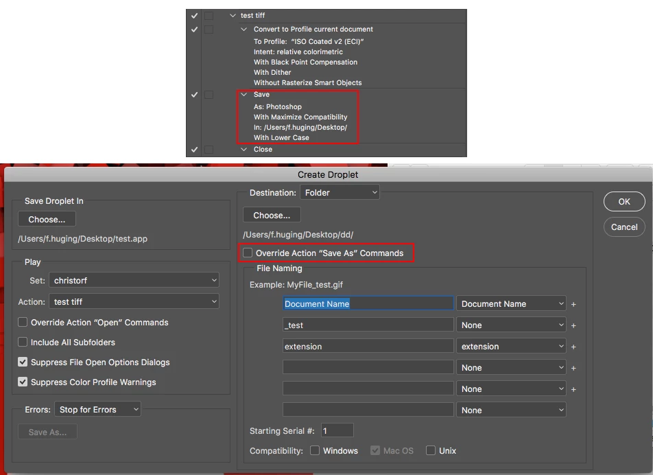 It only opens the File and saves it as PSD. Doesn't matter which format you set in your action and it ignores all orders you set in the action.
