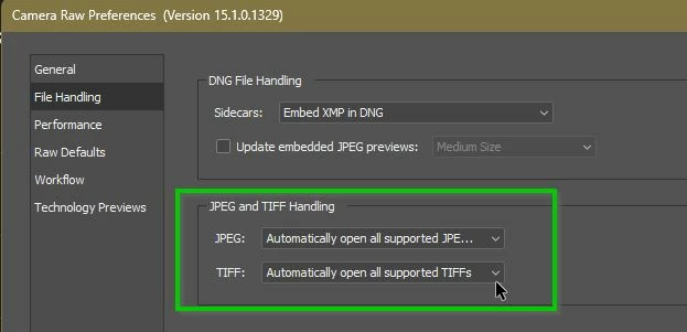 Check your Camera Raw preference for handling non raw documents.