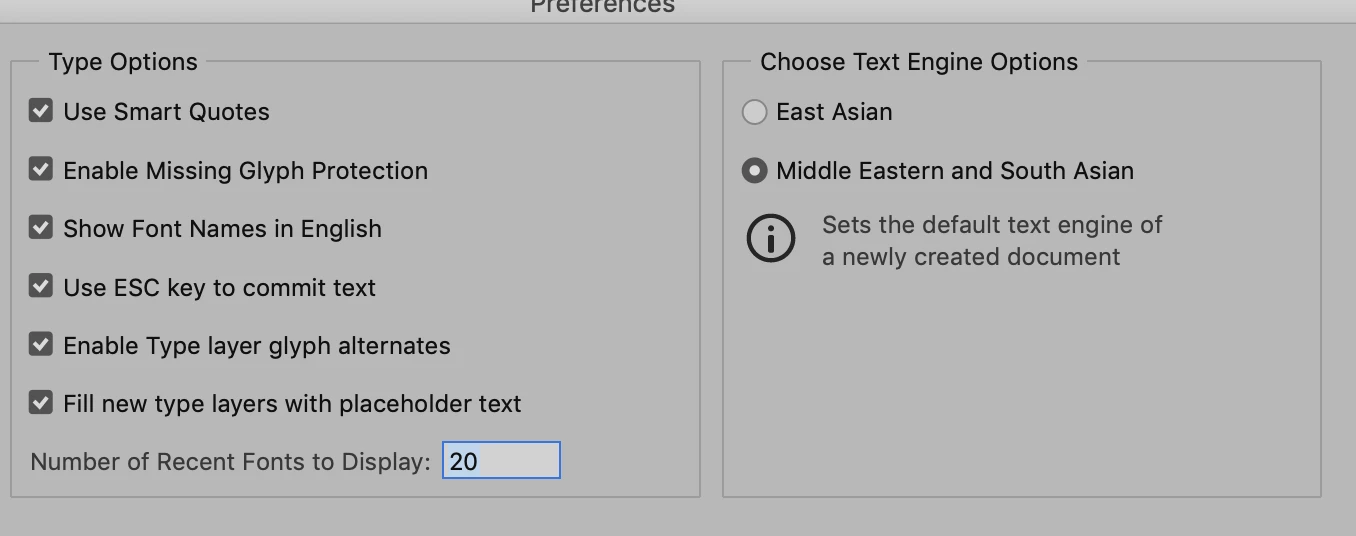 It is related to the Right-to-Left text directions which shows only when you activate the Middle Eastern type engine. If you don't type Arabic, Farsi, or Hebrew then it is recommended that you keep Text Engine to "East Asian".
