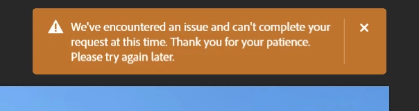 "Encountered an issue" notice in Photoshop when trying to use generative ai tool. App is up to date. Any ideas?