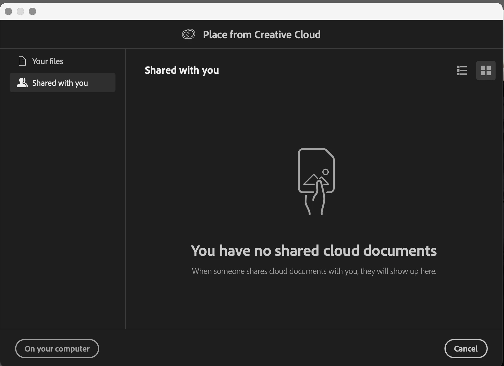 Issue with Shared Files Not Appearing in Adobe Creative Cloud Place Embedded Feature