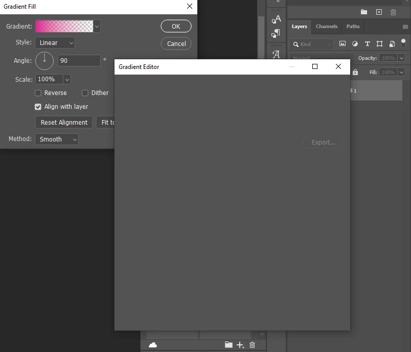 Finally, regarding the Gradient Editor window, at least on Windows, upon opening the window the first time since launch, the Maximize button is available and can be clicked, but after clicking it, the button becomes disabled and you cannot unmaximize, but the window can still be resized down to its usual size afterwards.