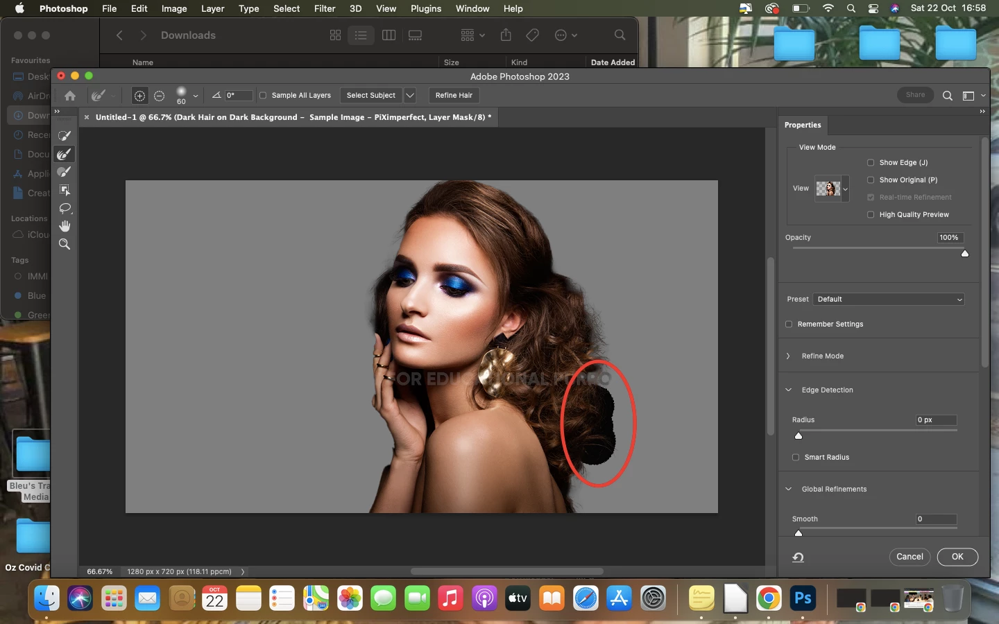 Hi guys, new to learning and working with Adobe Photoshop, have been learning the select an object with the select and mask.. however when following instructions to make the hair and edges better using the refine edge brush, mine looks and works completely different to all the videos I watch. Mine seems to act like an eraser instead and lightens it up and even starts taking away parts. Maybe I am doing something wrong or a setting is out but I can't seem to find a solution to the problem I am having.