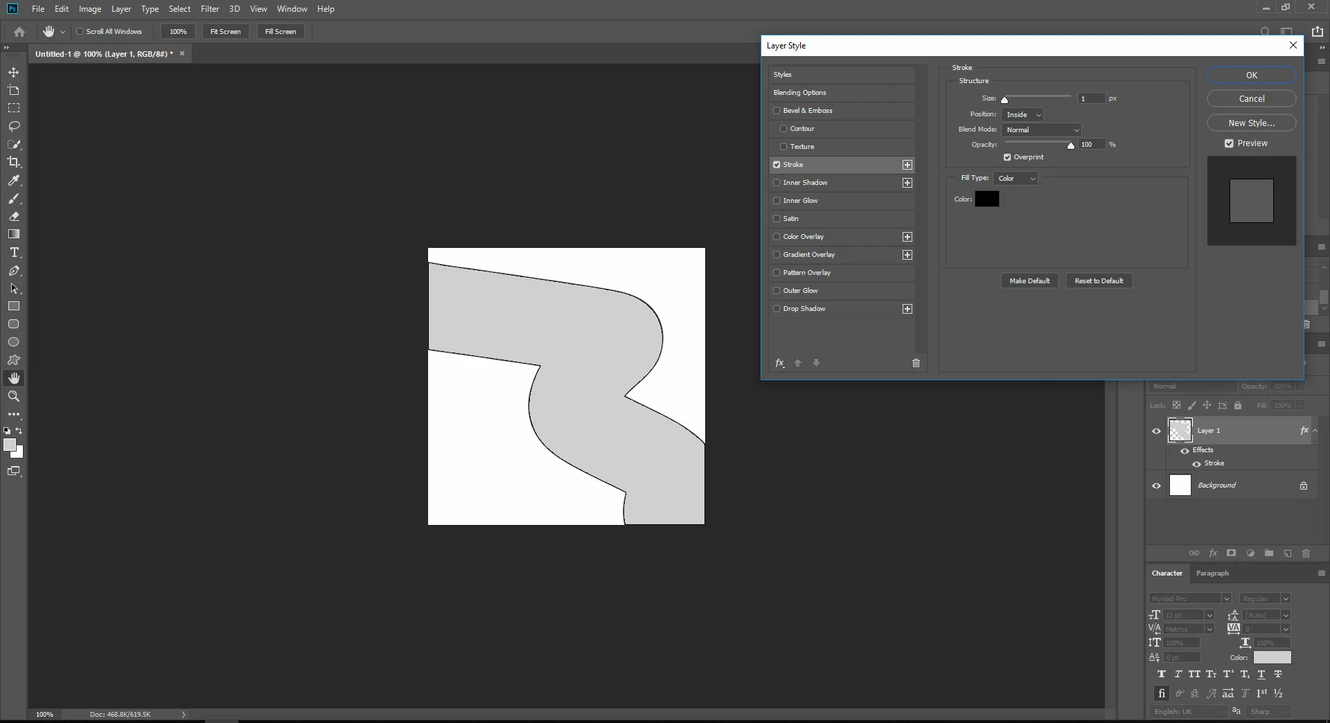 4. Same again, but using a two pixel stroke to see if  matched the original.  The original is definitely set to 1 pixel stroke.