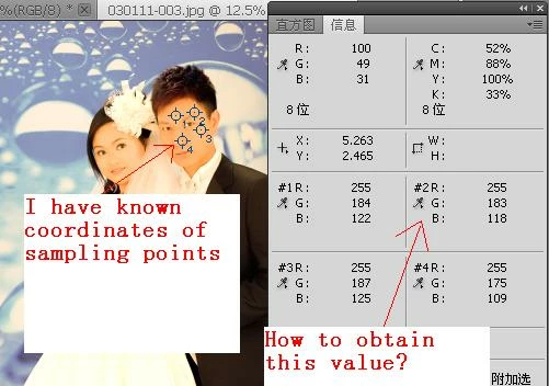 How to get the coordinates of one pixel of the sampling point RGB color?