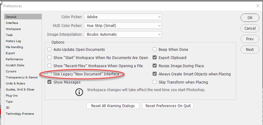 If you are using the current version of Photoshop and are not seeing the new New Document dialogue, go to Preferences - General and ensure that "use Legacy "New Document" Interface is not checked.