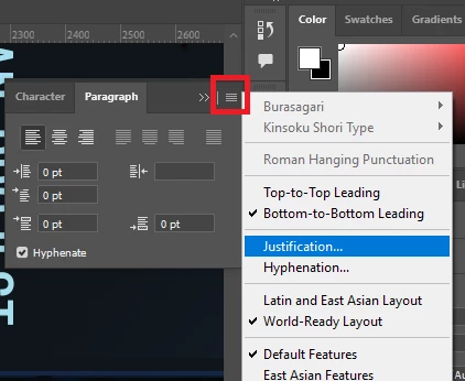When I click Windows>Paragraph, all Justify icons on the Paragraph dialolog are greyed out. YouTube videos show the icons as active, so I can't justify text. I have selected the text in the layer, selected just the layer, selected only some text within the layer, clicked all the icons visible in the image, and messed with the fields that show the pixels, and nothing makes the Justify icons live. Please help. Thanks