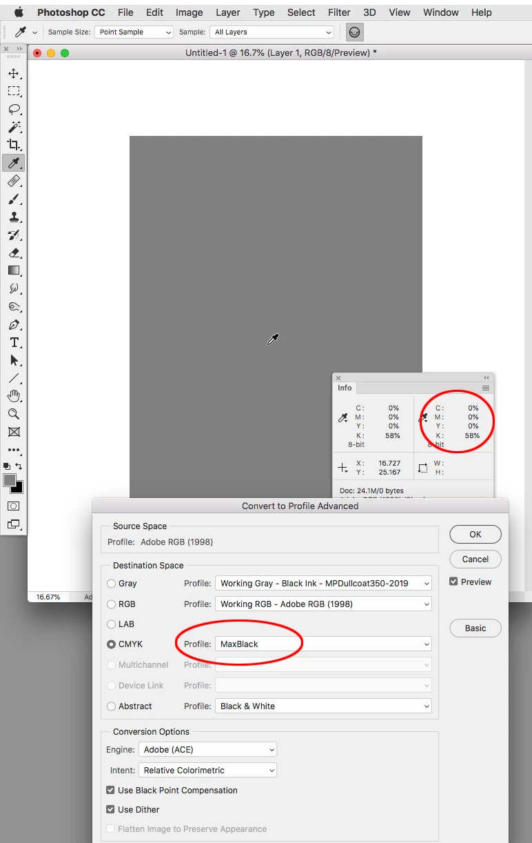 K Levels Low After Converting Color Profile for Offset