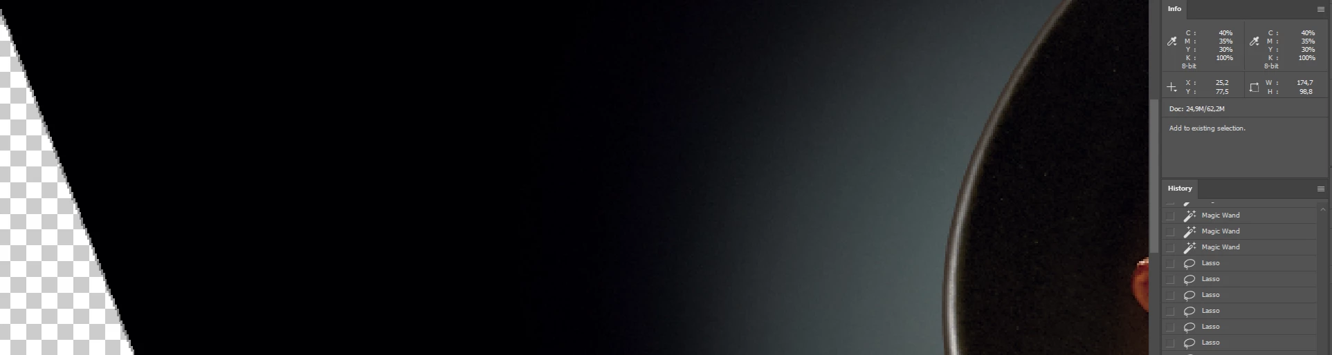 I want to change the backround color (black) to CMYK 100% but without changing the shadows,so far I tried making one layer CMYK 100%-placing it to the bottom of layers then I selected the shadows and made a clipping mask and tried using color range but the transition between the shadows and backround gets to rough.