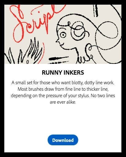 I am trying to download the Runny Inker brushes but all that is found in my brush selections is the Inkers 2018. Is this the same pack just with a different name? Thanks!