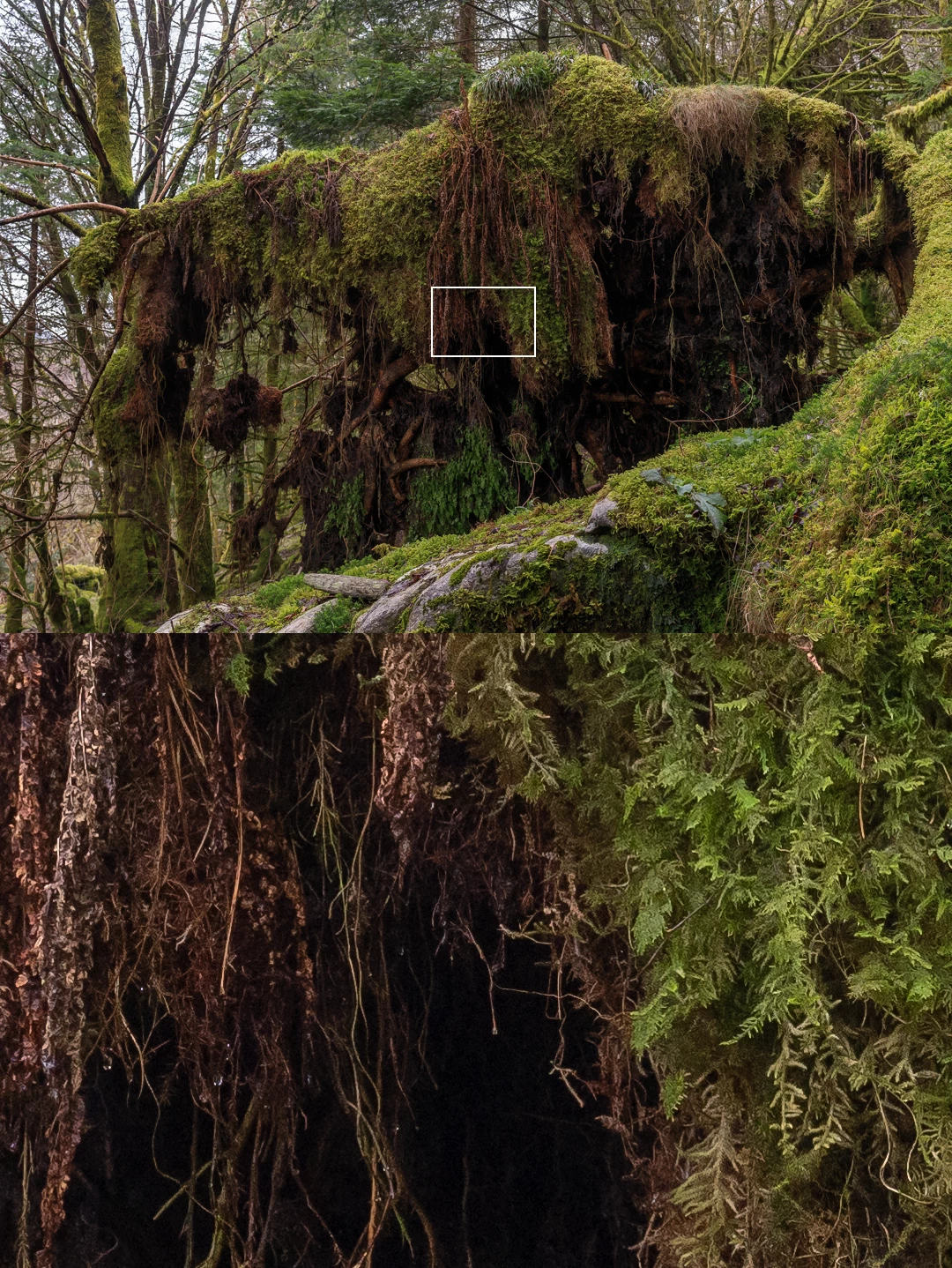 Here's a practical demonstration. These two images were shot with a Sony a7r V, the highest resolution 35 mm camera available today at 9504 x 6336 pixels. The bottom half is a 100% crop. Look at that in a separate window to see it 1:1 at your native screen ppi.