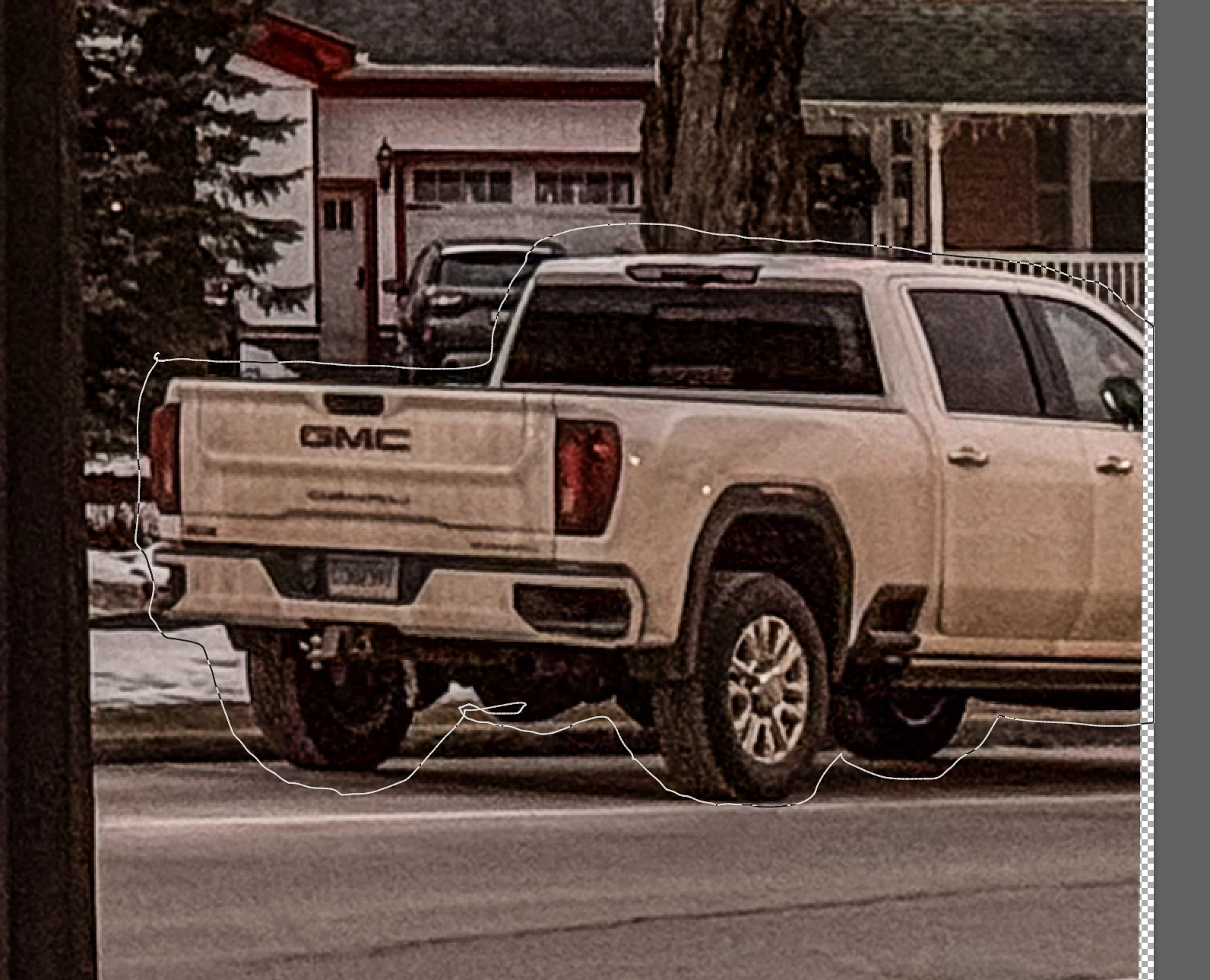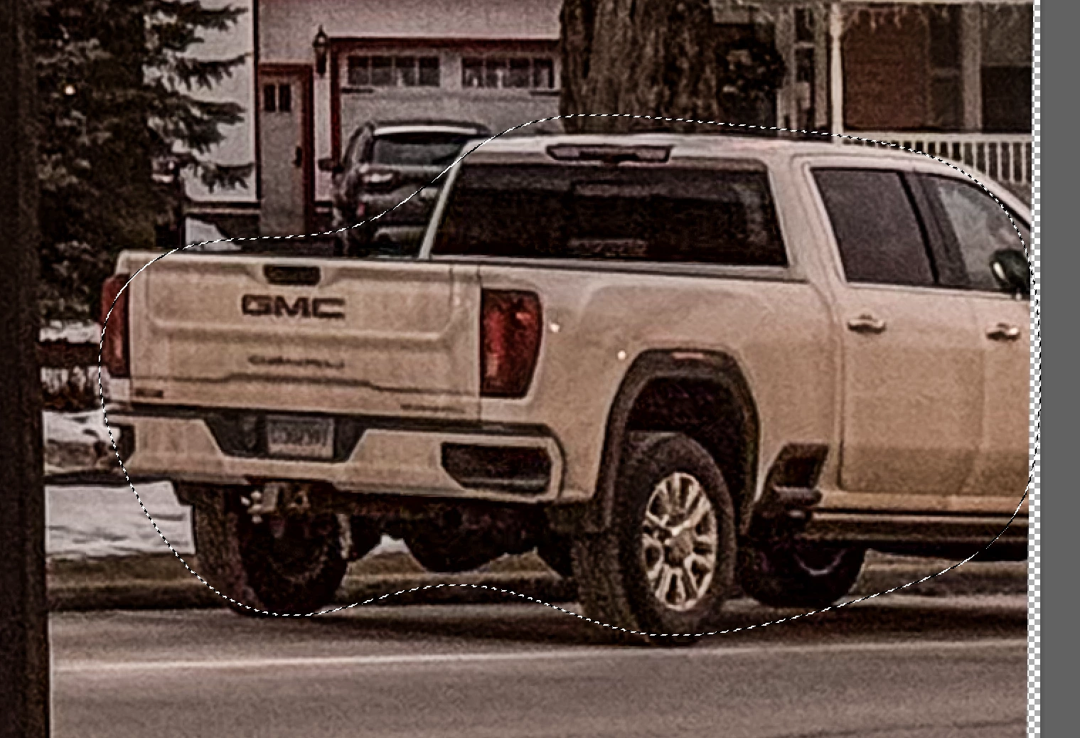I carefully drew around a pickup truck so it would be selected:
