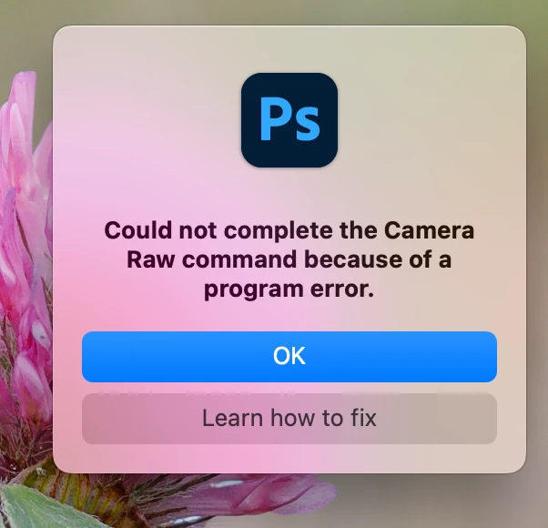 Latest version of Photoshop but Program error while trying to open Camera Raw