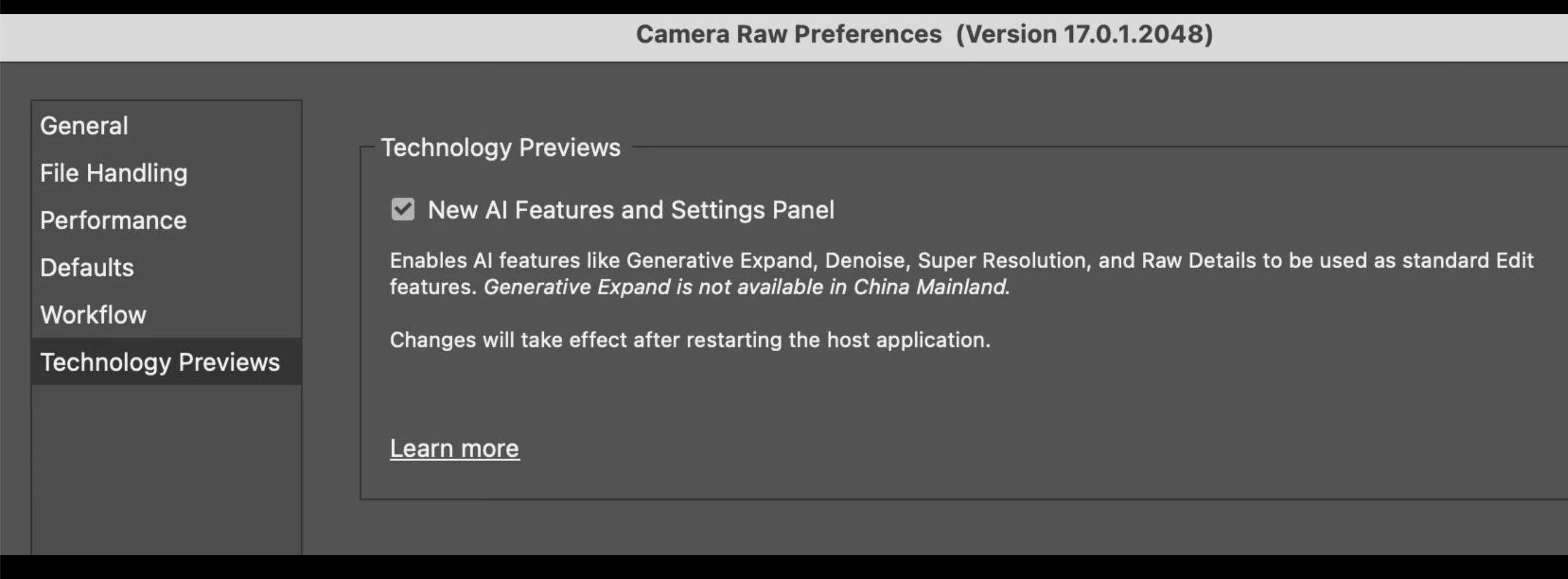 I am told I need to enable Technology previews in Camera Raw but when I open Camera Raw from within Photoshop it will not open and gives me a program error. Here are the screen shots, one showing how to enable Technology Previews from the friend who is advising me and the other from my own machine, a Mac M1 with all of my software up to date as of today. I am not able to open Camera Raw. without the error and online helps are old as it says open preferences which now has been changed to 'open settings.'
