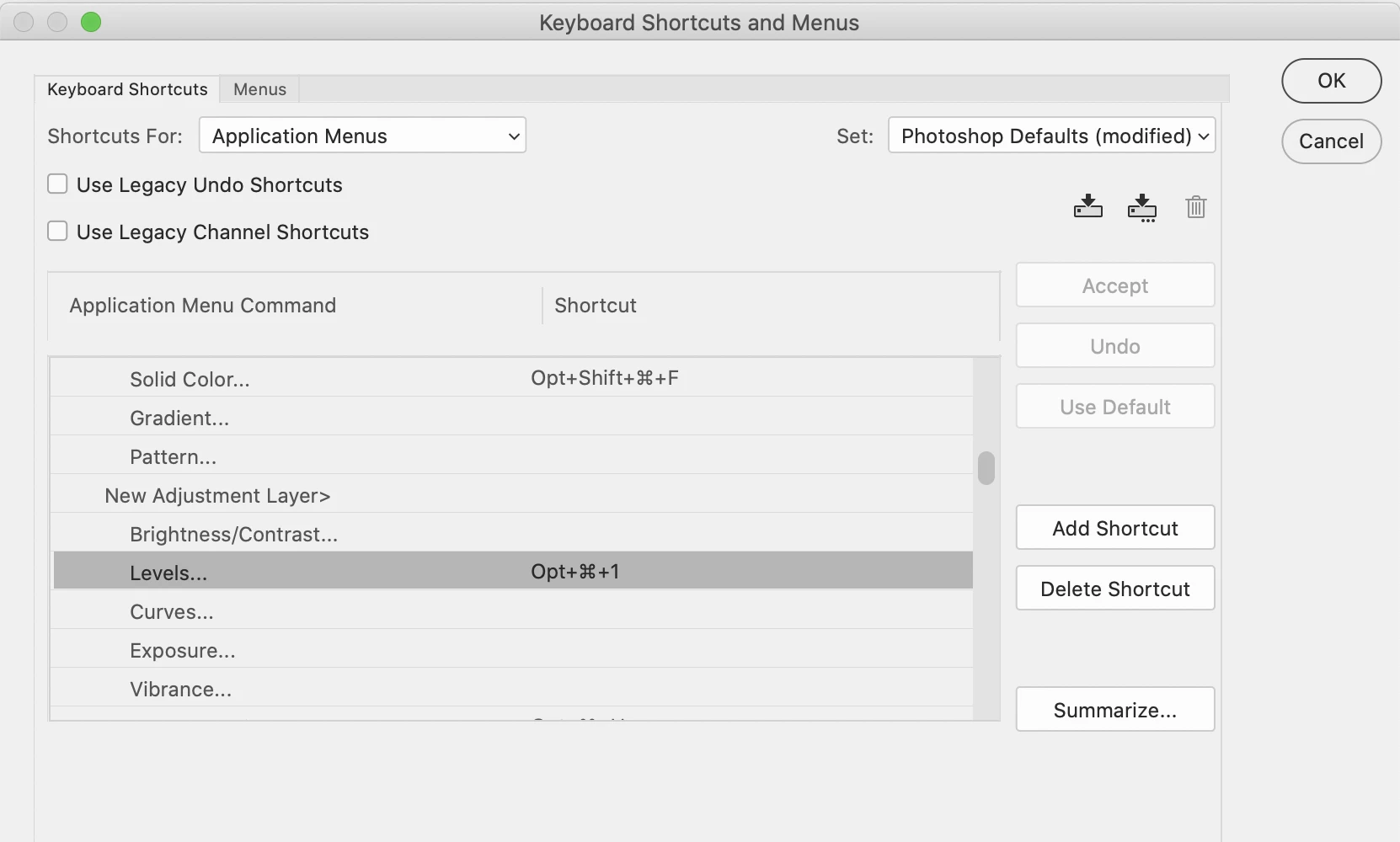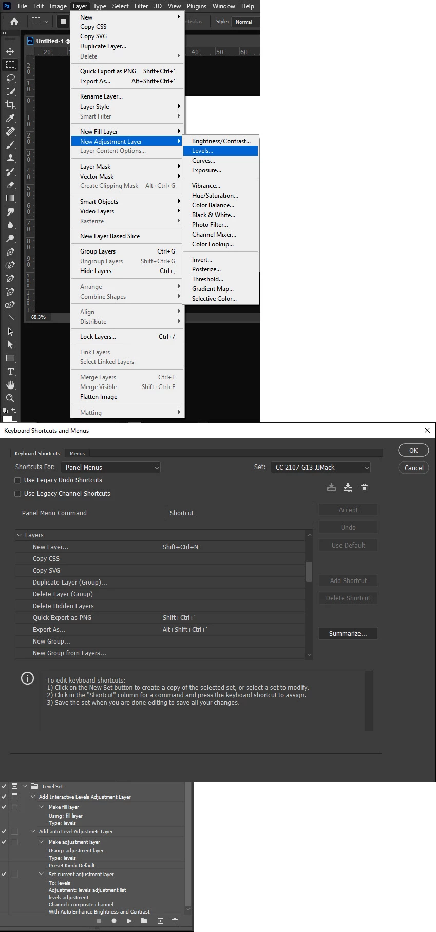 I am trying to assign a shortcut to a Levels adjustmnet layer, which I have done. When I execute the shortcut, a dialog box pops up seemingly so the layer can be named. This doesn't happen if you do the alternate method of clicking the adjustment icon at the bottom of the layers panel, it just automatically names it layer 1. Is there any way I can get the dialog box to not come up but just automatically name it "Levels 1" so I dont have to deal with the dialog box after I do the shortcut? Thanks.