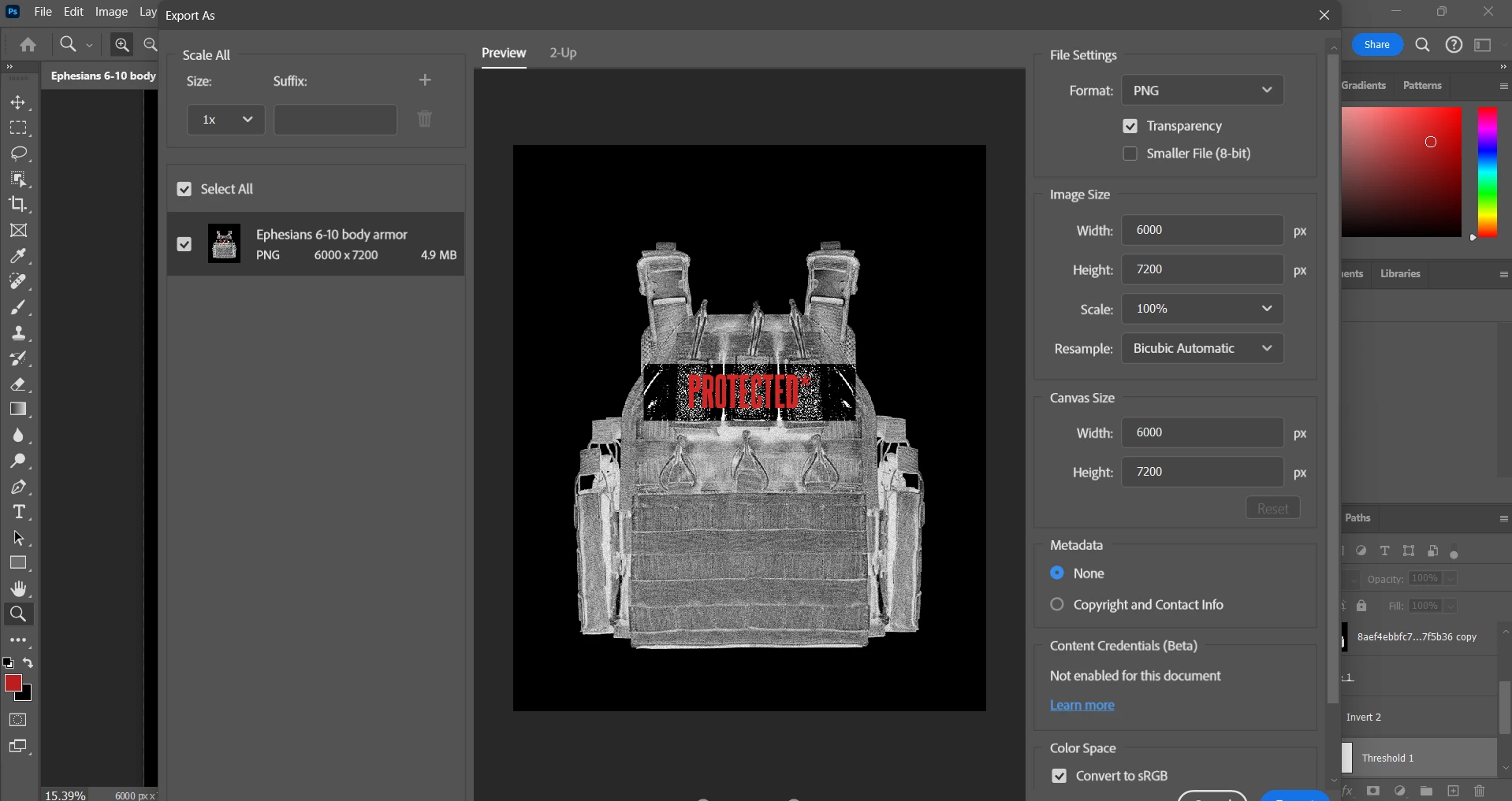 I'm relatively new to PS but usually when I export a project it retains all layer/effect info so the image displayed is the same one exported. However I am having trouble exporting this one project properly. It have to images overlayed both with Threshold and invert applied. I made a clipping mask so that I could see through one layer to have one area of the subject have differing effects. It all looks great and fine but when I try to export it the ONLY one threshold layer gets changed. I cant figure out why, the only thing I do is try to export like I normally would. Help??
