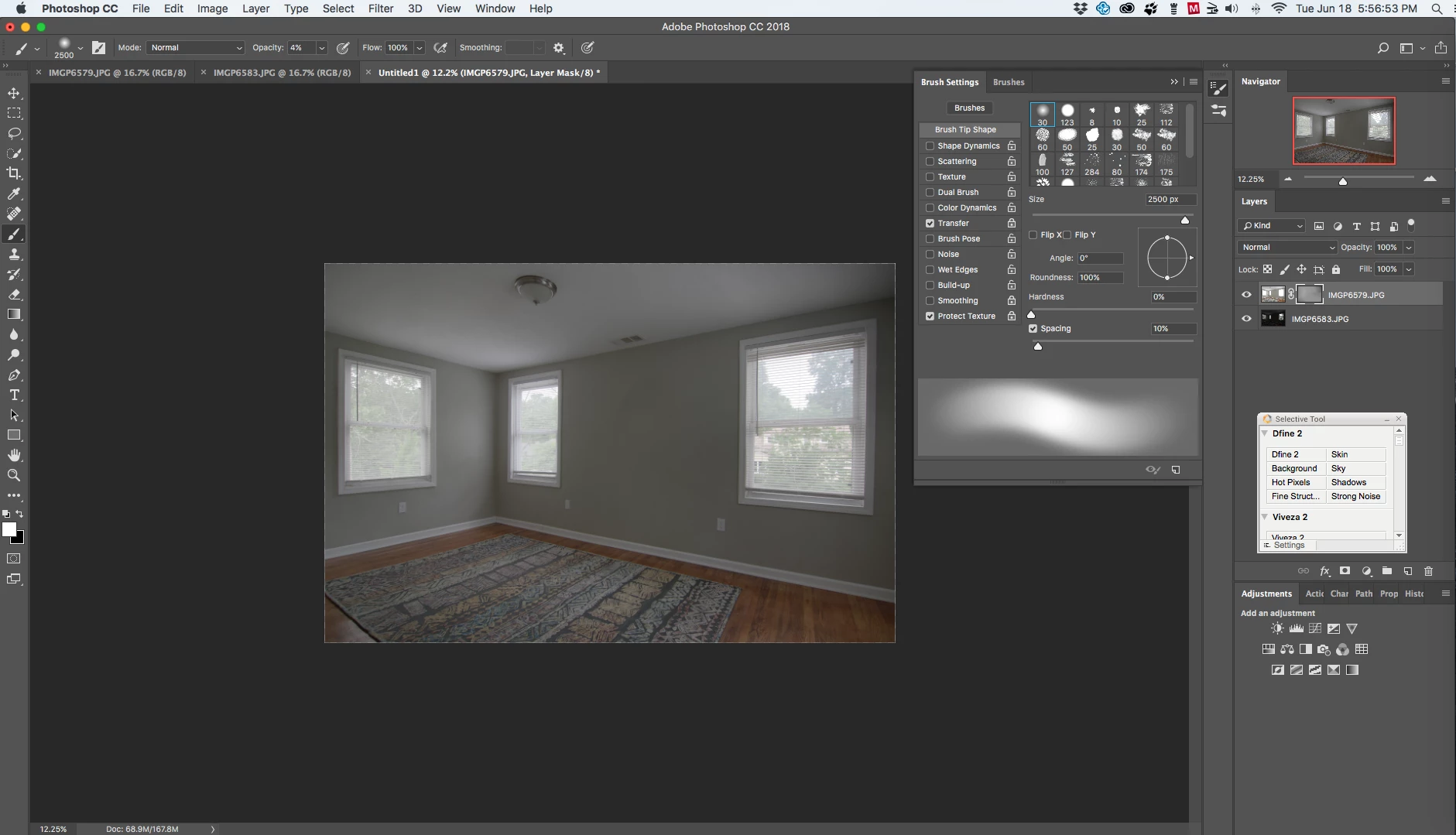 hello. as a photographer i create image stacks in Ps CC 19.1.8. as part of my work flow i use luminosity masks to brush in elements from multiple layers. up until a few days ago, while holding down on the left mouse button to reveal the elements (lights/darks) from masks below, if i continued to brush over a certain spot, eventually that spot would be 100% revealed. now, when utilizing that same technique, the very same spot will only reveal up to a certain %, meaning, while 'painting or revealing' i have to continue un-clicking and re-clicking the left mouse button to further advance the elements below of a particular spot. my brush settings have always been the same: