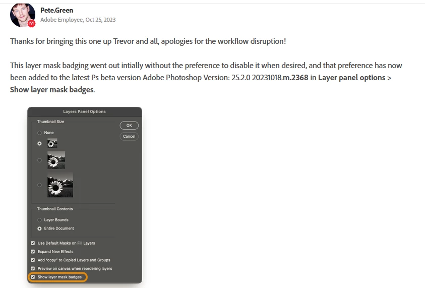 Pete, can you fix this in the main version ASAP this makes photoshop unusable. A beta version fix is not good enough.