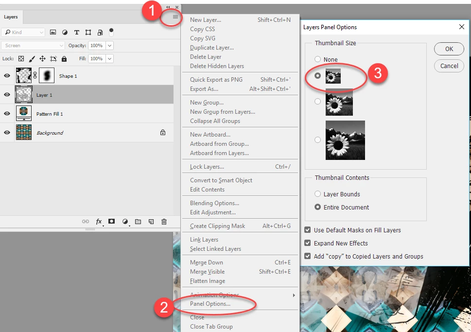If so - go to the top right of the layers panel. Click on the square then from the menu choose Panel Options - then thumbnail size