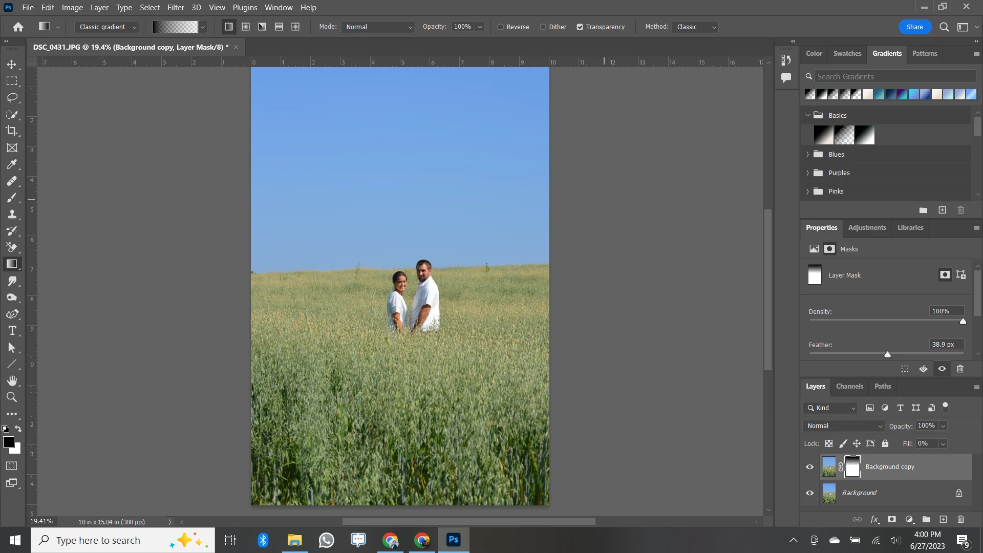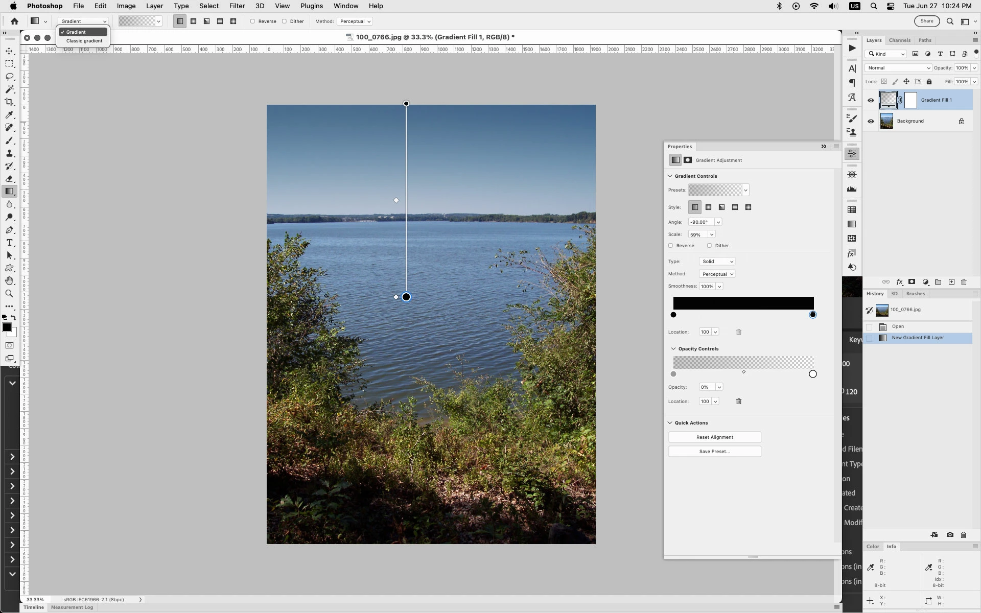 I want to add a gradient layer to this photo and I can do so, but it's only visible in the little thumbnail, and not on the actual photo, therefore I can't see what I'm doing! It had been working fine, but then suddenly won't show. Please help!