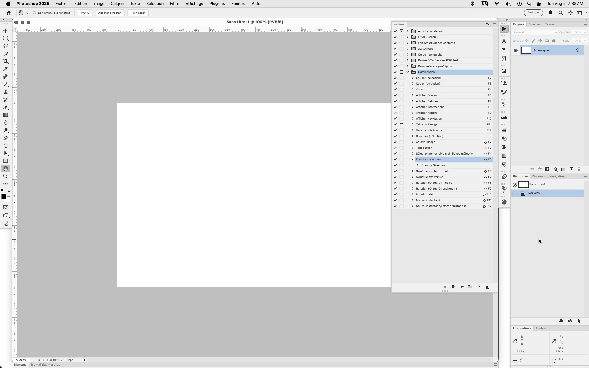 J'ai réinitialisé les préférences, aucun résultat. J'ai vérifié dans les raccourcis clavier, tout est ok, maj+F5 est bien assigné à la fonction "Remplir" et il n'y a rien pour la fonction "Etendre"