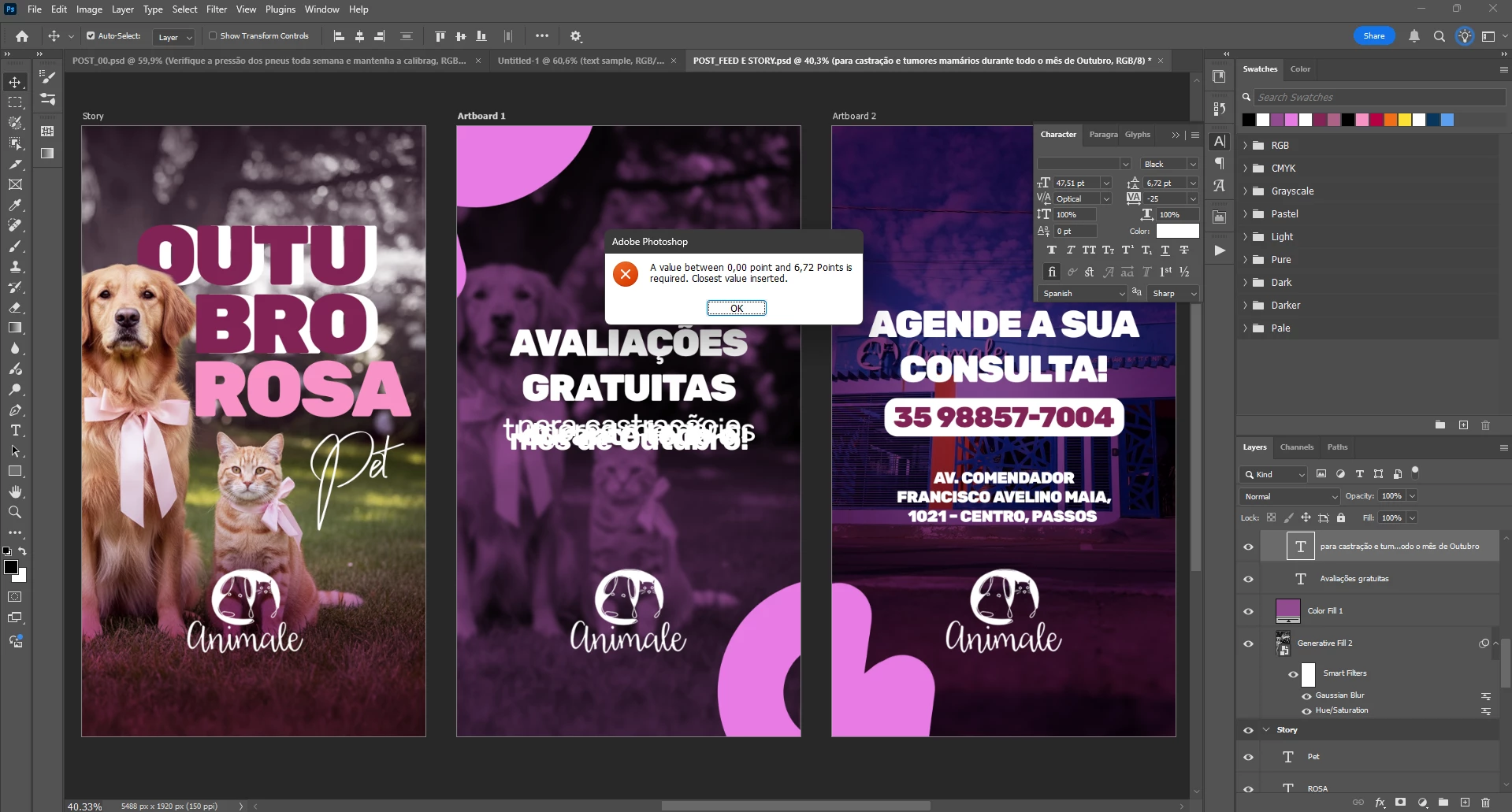When i try to change the text leading, i see this message: value between 0,00 point and 6,72 Points is required.