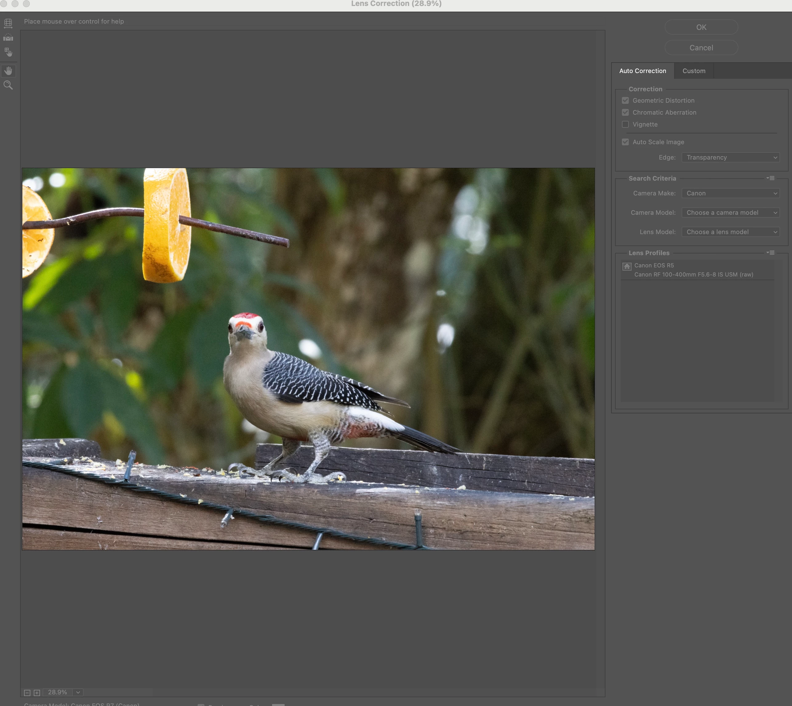 My Photoshop version is 24.3.0 and Camera Raw is 15.3. I don't have a workflow to share. I am an individual user and don't keep a workflow app active. I am attaching a screenshot of the Lens Correction screen but could not keep the Dropdown box diplayed when using Preview to capture the screen. The Adobe chat disappeared on my when I went to grab a screensave in my Photoshop. The recommendation had been to use the "All" selection in the dropdown instead of looking for the R7. When I tried used that approach ( instead of selecting the R6 option), the result seemed to have less precise resolution. I hope this information helps you to trouble shoot the problem or mislabeling of supported cameras.