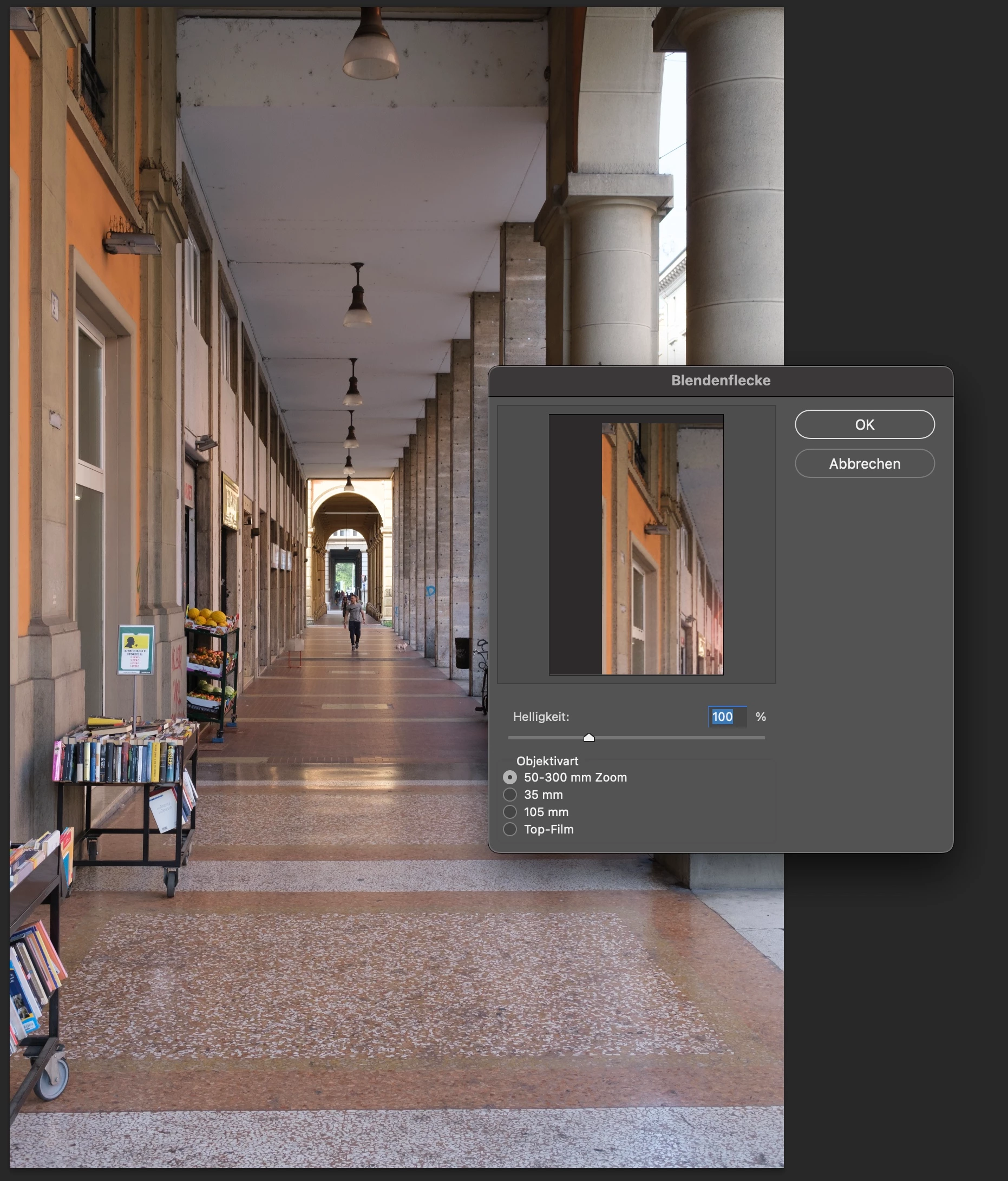 does anyone know how I can get the entire picture into the frame of the lensflare filter? All I can see is the upper left corner of the picture. It is not possible to place the lense flare where I want to have it.