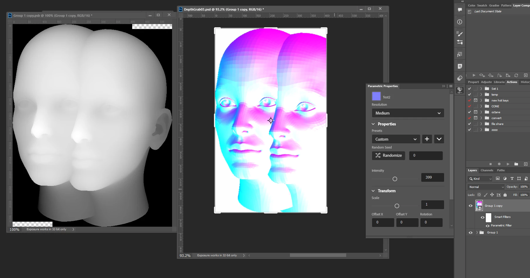 I am trying to use material panel to make on the fly "normal map form height map" filter in Photoshop. But the panel is totally , absolutly useless . Please Adobe let us create our own filters for Photoshop , without weird re-scaling and transforms , without unnesessary extra "lighting" . Normal map colors I get from my sbsar are not even right. Why I can perfectly do such a filter in Afinity photo and can't in Photoshop.