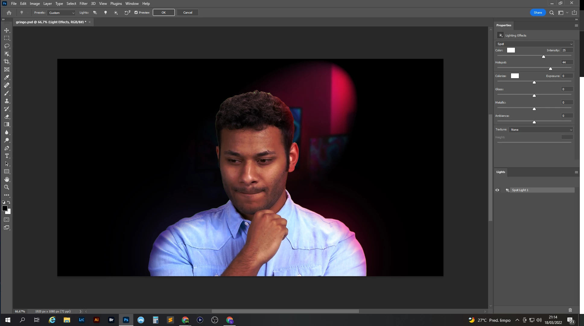 Minha imagem é RGB 8 Bits conforme vi em alguns tutoriais. Anexo como aparece. Eu não consigo controlar nada, os pontos de luz não aparecem para eu arrastar e alterar os valores.