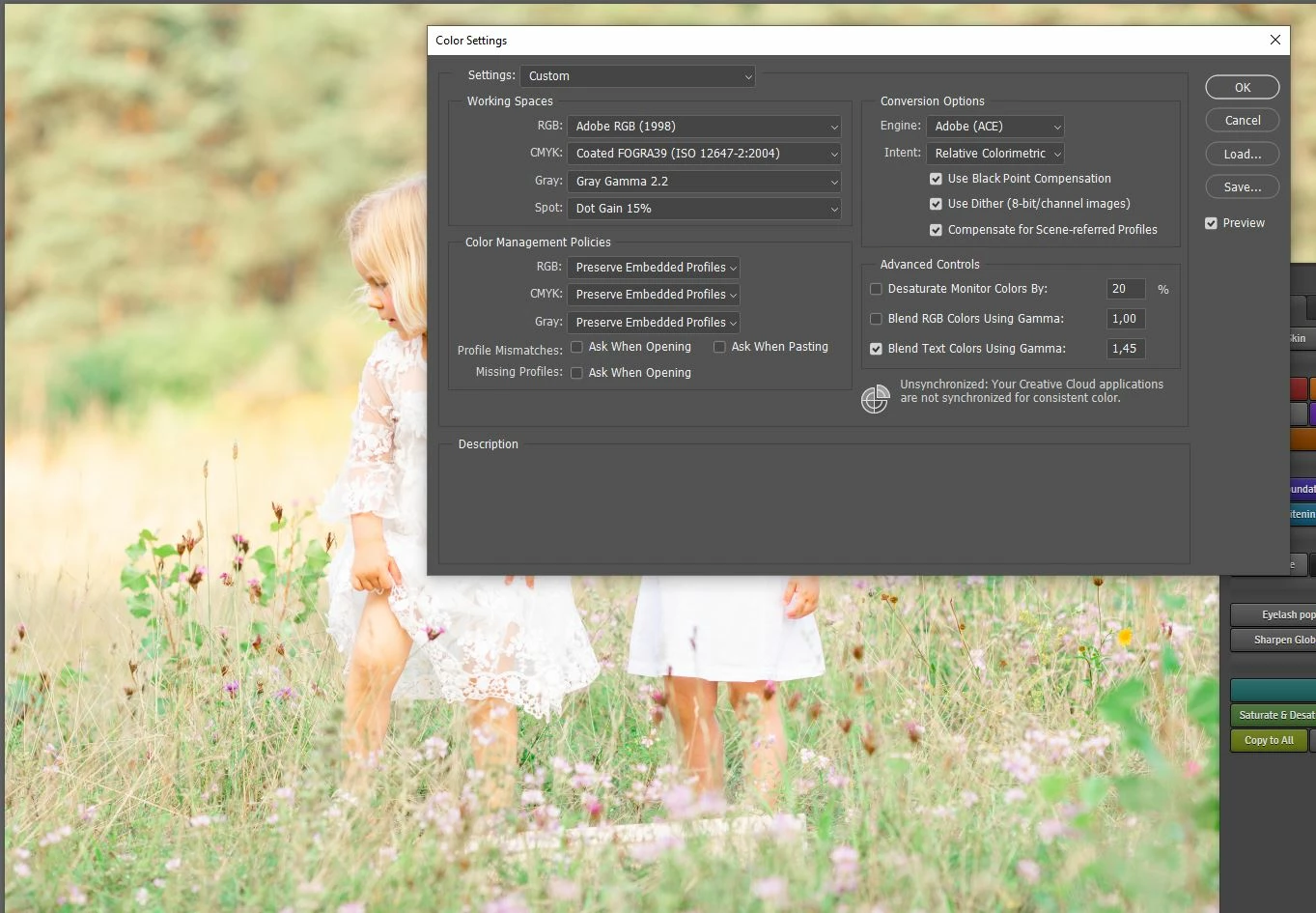 my colors of Lightroom and Photoshop doesn't match. I'm working on both in Adobe RGB and no Color Profiles (Adobe color).