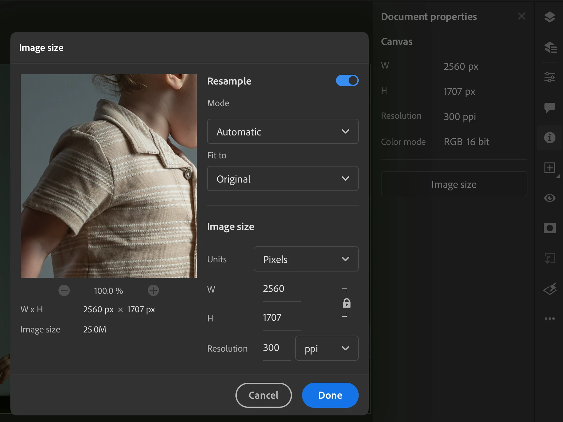 On my iPad inside of Lightroom the images size shows as 6000 x 4000. If I take that image from Lightroom on iPad and click on Edit in Photoshop, it then opens up the image in Photoshop for iPad. What I have noticed is that when I do that, the image size drastically changes. For one particular image, the image size on Photoshop for iPad was 2560 x 1707.