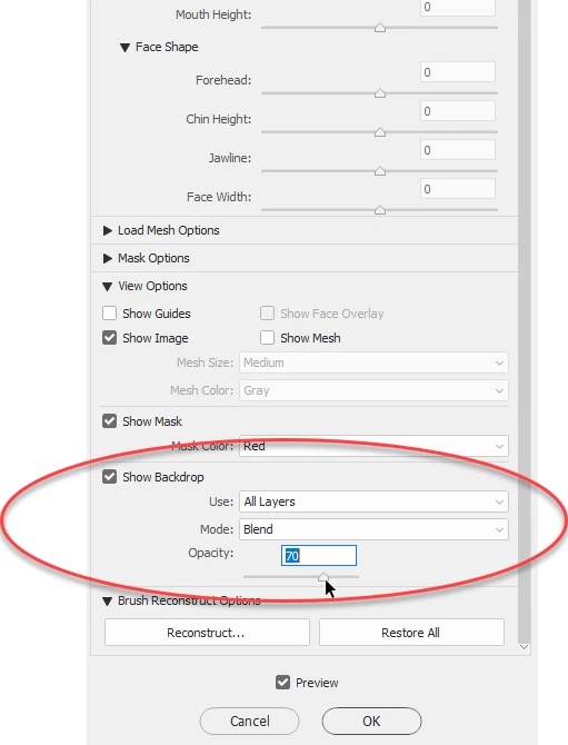 If you have a layer that is using blend on it and you enter Liquidfy. the preview shows it WITHOUT the blend.