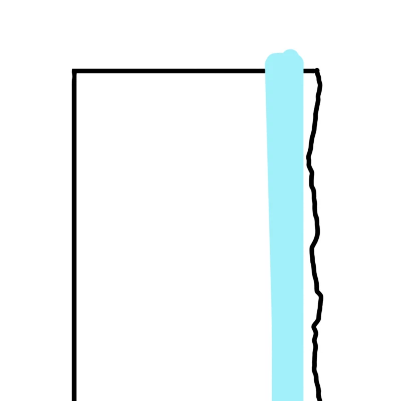 A simple diagram - I want to use freeze mask in a perfectly straight line (or rectangle or polygon) - to define a guided liquify brush so the freeze edge will be straight.  In this case the blue line (paint holding shift in the regular brush tool) is a proposed freeze mask edge and the jittery RH side can be pushed over to the line and stop.  The ultimate would be to allow a clipping/pen path to be imported as a limiter for freeze mask.... then even curves and custom shapes could be frozen in order to set liquify limits precisely.