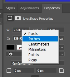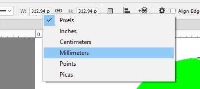 Although my default unit is set to mm, when I create a shape it shows up but then the width and height at the top are shown in pixels. How can I make it show in mm?