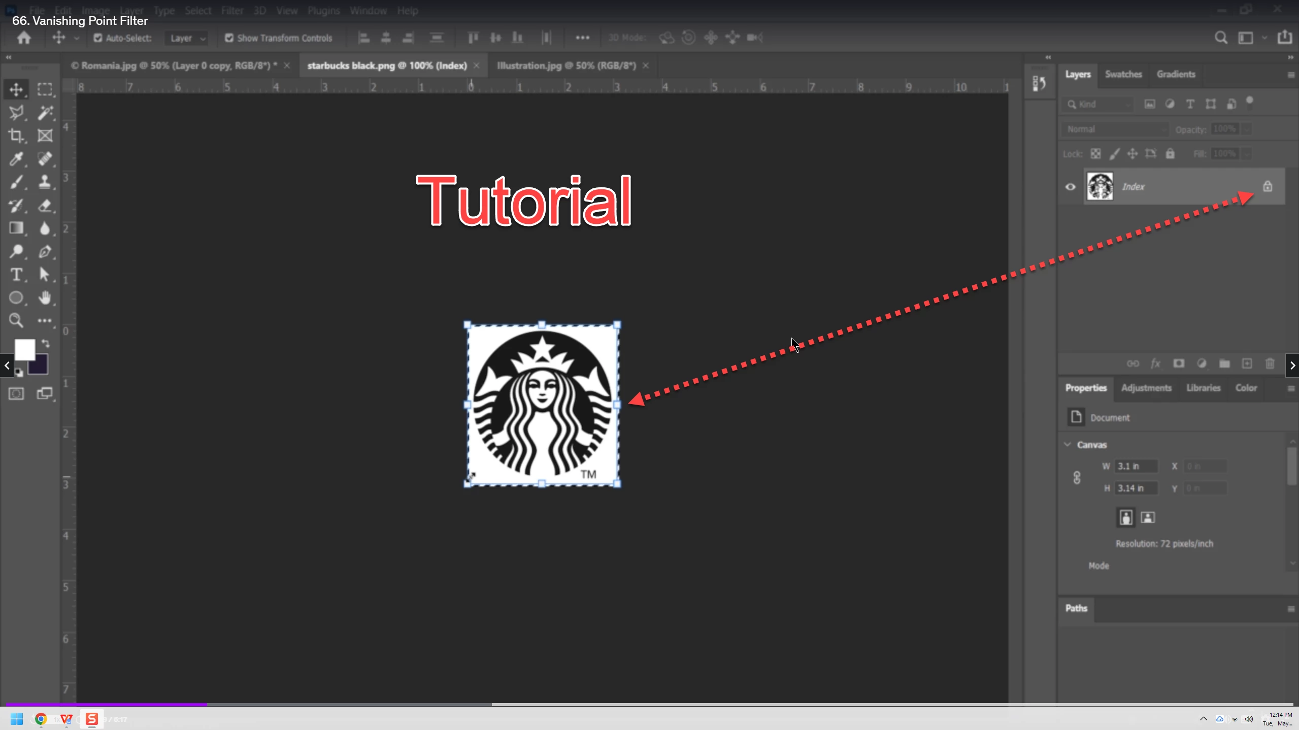 Hi @MahaB82A your file is not exactly like the tutorial file. The tutorial file has a white background fill, whereas yours has no background so it's a transparent PNG. You cant directly edit/transform a locked layer. You would need to unlock or select using Select Menu>All to see transform controls with your Move tool.