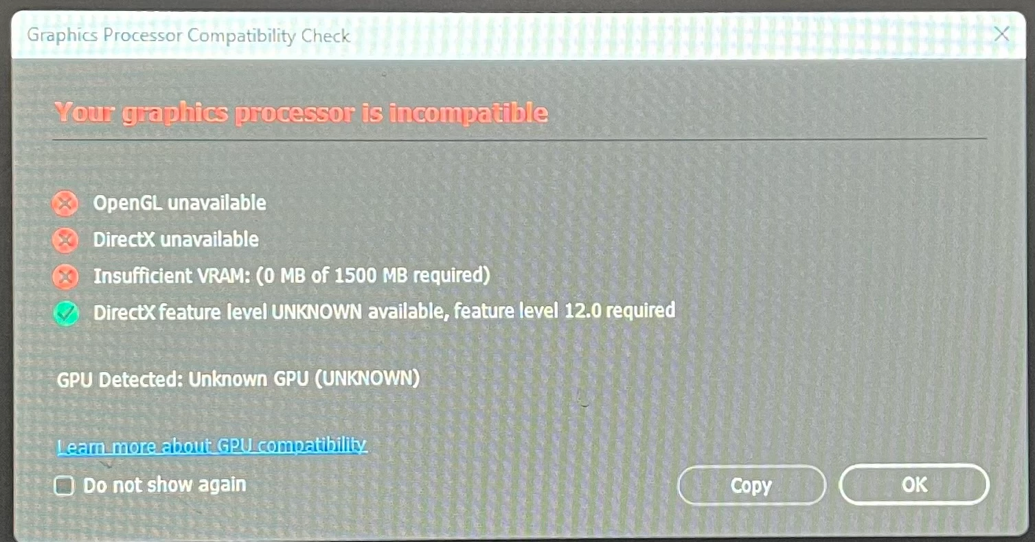 Here is screenshot of my issues with my computers compatiblity with photoshop?