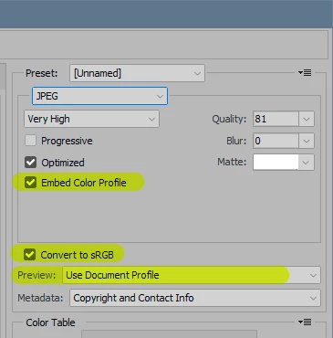 loss of color profile exporting from photoshop