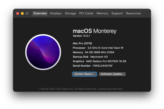 Mac Pro 2019, W5700x, OpenCL not working.