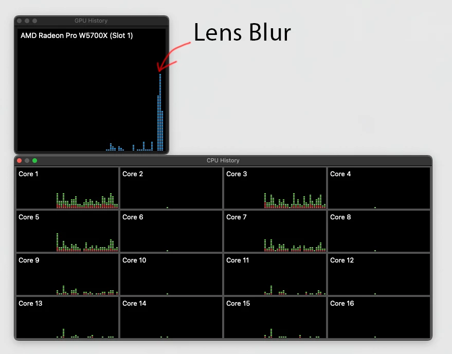 When using "Select and Mask", (a feature which is listed as using OpenCL for acceleration) there is no sign any GPU activity in Activity Monitor. In fact performance is improved drastically by disabling OpenCL.