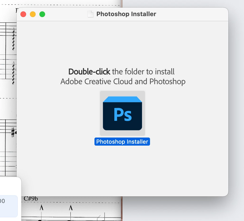 MacOS 14.7 Sonoma on 27" Intel iMac - when I double-click the Photoshop Installer (Blue "Ps" icon in the "Double-click the folder to install Adobe Creative Cloud and Photoshop" window), the PhotoShop installer window opens and closes, but NOTHNG HAPPENS.