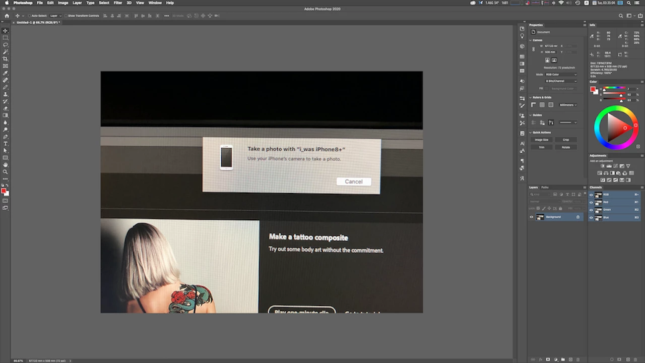 Take a photo with your iPhone. Photoshop displays the photo immediately.