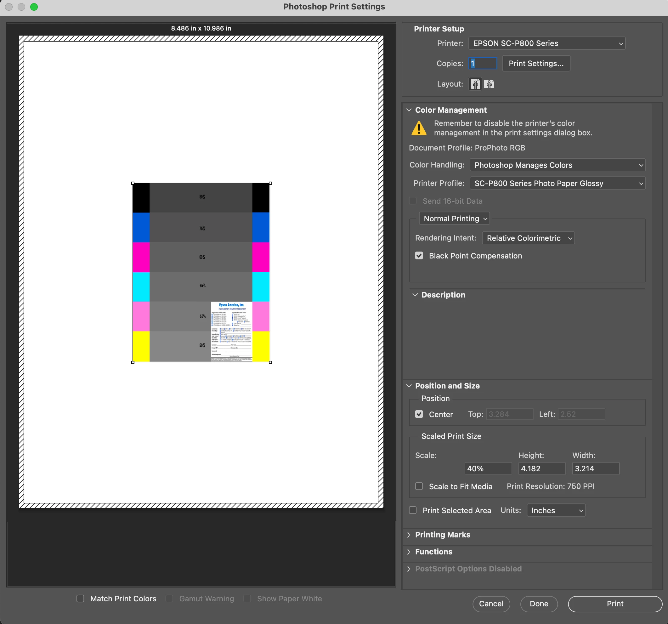 Magenta Prints with an Epson P800, Photoshop 26.8.0. Mac OS 15.5