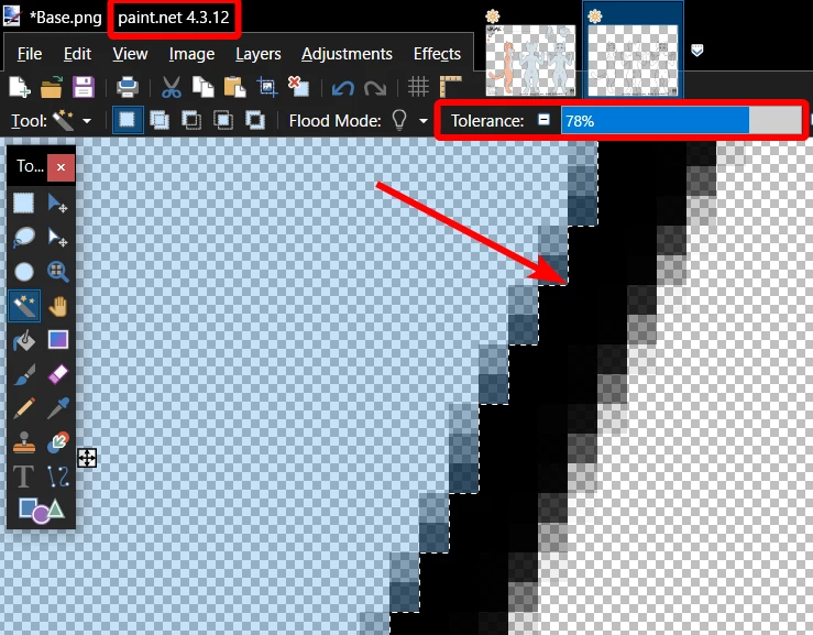 Here you can see this working perfectly with 78% tolerance in Paint.NET: