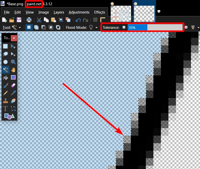 Magic wand tolerance not working on simple black line art on of transparent/white background