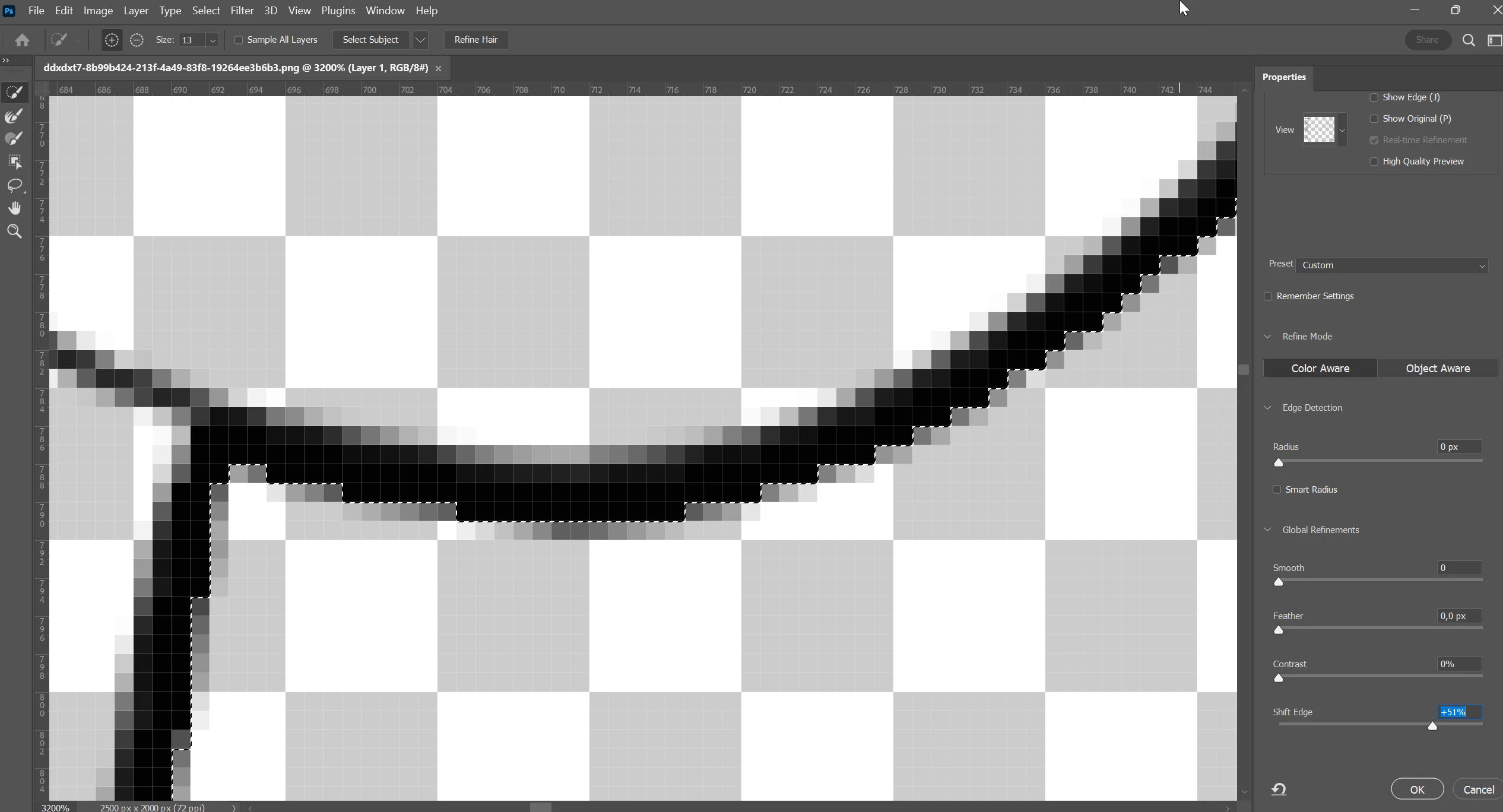 I want the initial magic wand selection to go on the INSIDE of the faded edges and aliasing.