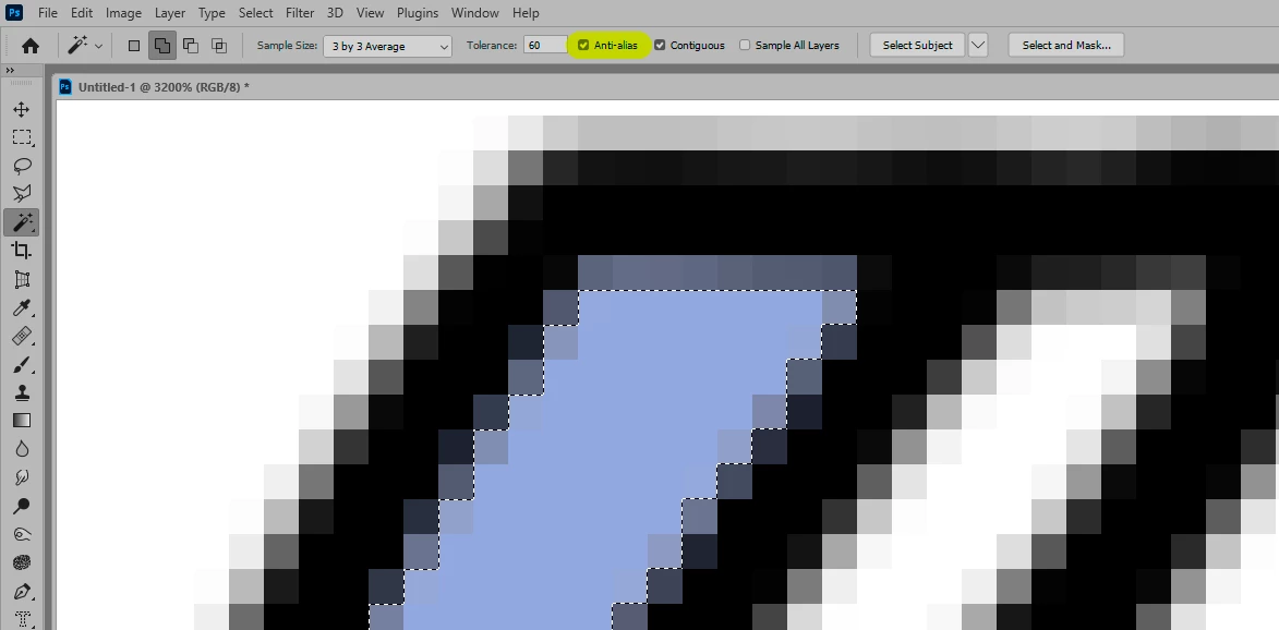 - Adjusting the Sample Size and using it with every combination of tolerance level. This had no effect, except for higher levels making the wand act as if I had "Contiguous" unchecked.
