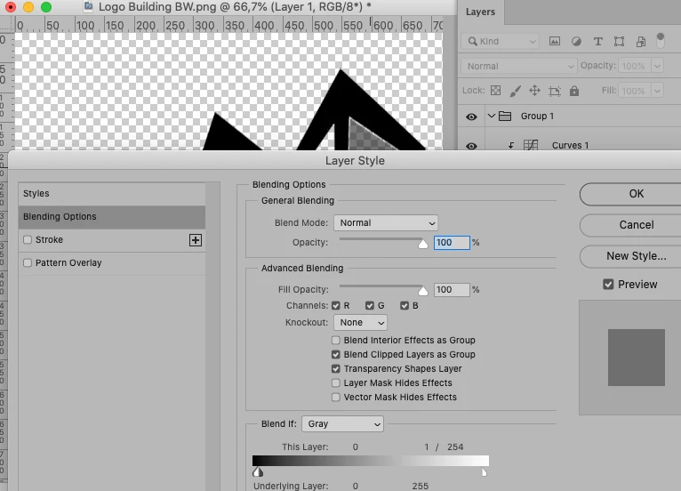 • Blend if-settings
