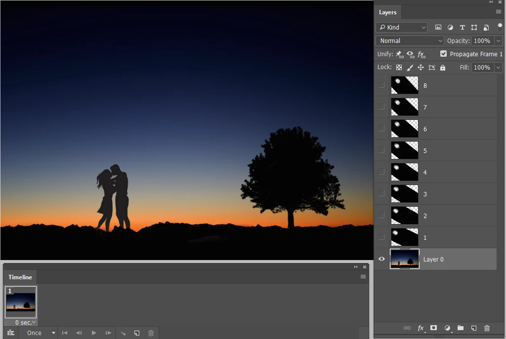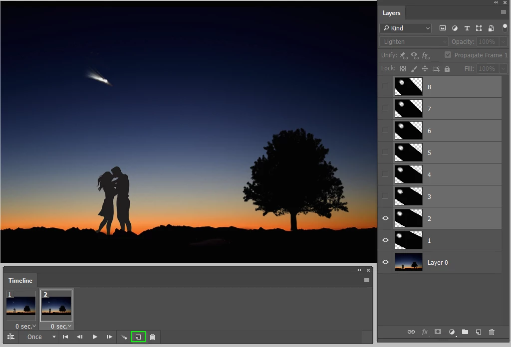 I have done a timelapse with stars, and now I want to create star trails. Easy enough. Make every image lighten. However, I want this to be a GIF. It starts with my first image, and as it goes through every image I want each photo to overlay each other, but as lighten so that I can get the trail.